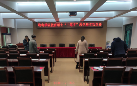 11月22日下午,学院在理科楼连廊402会议室举行教育硕士“三笔字”教学基本功竞赛,有14名研究生参赛。评委们根据评分细则对提交的钢笔字、粉笔字和毛笔字作品进行综合评价打分,最终评出盛芳、宋丹丹2名研究生获一等奖并参加学校决赛,王远等5名研究生获二等奖,王芳等7名研究生获三等奖。