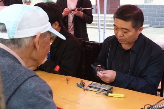 上午,志愿者在李长庚的指导下开展家电义务维修志愿服务活动。前来维修的居民络绎不绝,电视、电风扇、电磁炉等各式家用电器摆满活动现场。志愿者们认真将电器分类标号,深入排查故障原因,结合自身专业技能,对电器配件不足、电源接触不良、线路故障等各方面问题进行全力维修。期间,针对居民们提出的各种问题,志愿者们运用通俗易懂的语言耐心解答,并结合相关专业知识,向居民们普及电器保养方法及维修常识,帮助其正确使用、保养电器。