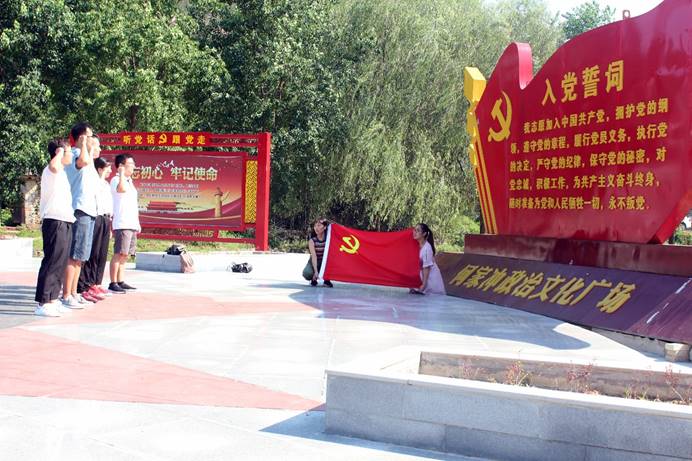 安排,由学院教工第二党支部书记刘墨林、研究生党支部书记孙金土和教师党员张昆带领的2018年研究生暑期“三下乡”社会实践团队一行8人,于8月25日前往红二十五军长征出发地何家冲开展社会实践活动,感受红色革命精神,体验革命老区新农村建设。