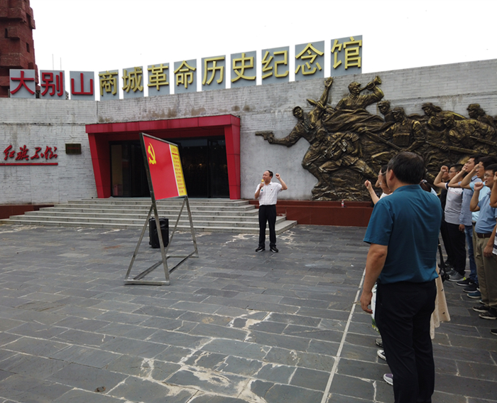 在大别山商城革命历史纪念馆,支部党员面对党旗重温了入党誓词,进一步教育引导全体党员同志牢记党的宗旨,牢记为人民谋幸福、为民族谋复兴的初心使命,立足本职岗位、勇担责任使命。随后,教工党支部开展了以“缅怀商城起义革命先烈,传承大别山精神文化”为题目的现场党课,党课由大别山商城革命历史纪念馆赵老师主讲,大家参观了当年商城革命的图片和实物,一幅幅感人的照片,一段段震撼的历史,一个个生动的故事,金刚台“山山埋忠骨,岭岭皆丰碑”的革命精神让大家深受感染,金刚台妇女排的故事震撼心灵。最后,支部党员开展了“寻找妇女排”红色主题活动。