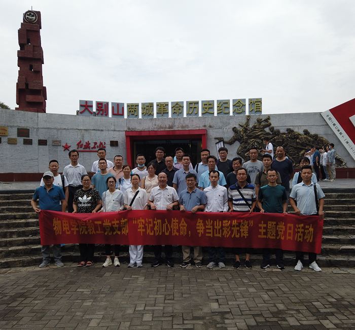 为庆祝中国共产党成立99周年,7月4日,物电学院教工党支部前往大别山商城革命历史纪念馆开展“牢记初心使命、争当出彩先锋”主题党日活动。学院党委书记柳士刚,院长涂友超,副书记、副院长仓玉萍,副院长孙宜海等共31名支部党员参加了主题党日活动。