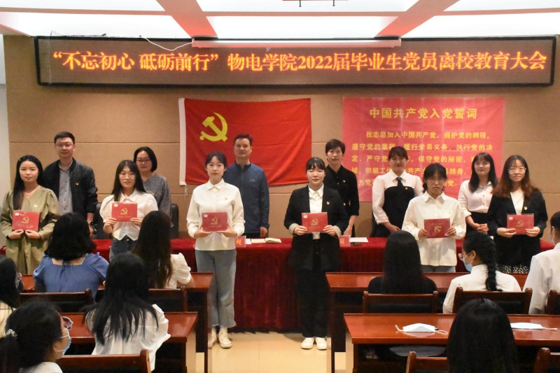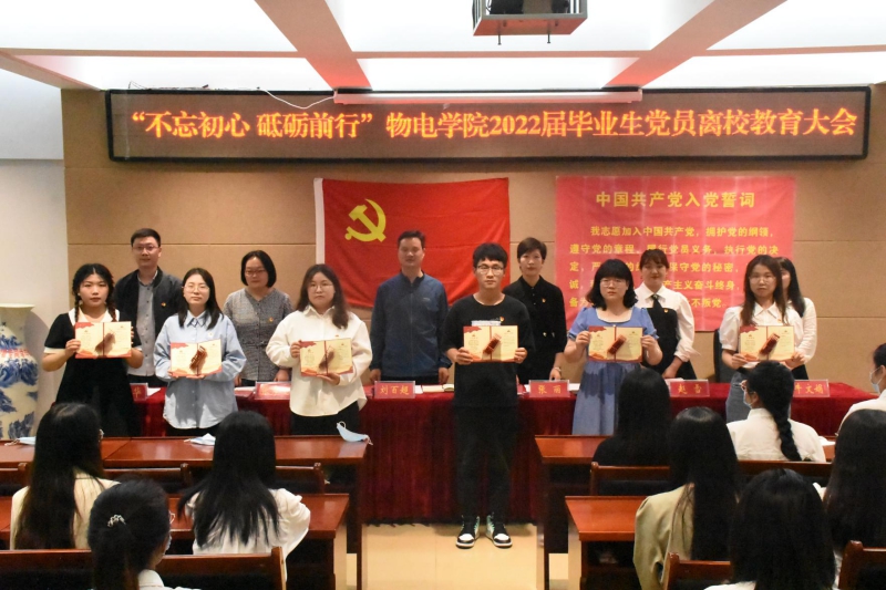为做好电影网站 2022届毕业生党员离校教育工作,5月18日,电影网站 在理科楼连廊402会议室召开“不忘初心 砥砺前行”物电学院2022届毕业生党员离校教育大会。学院党委书记刘百超、副书记张丽、学生党支部书记和毕业生党员代表参加了会议。会议由张丽主持。