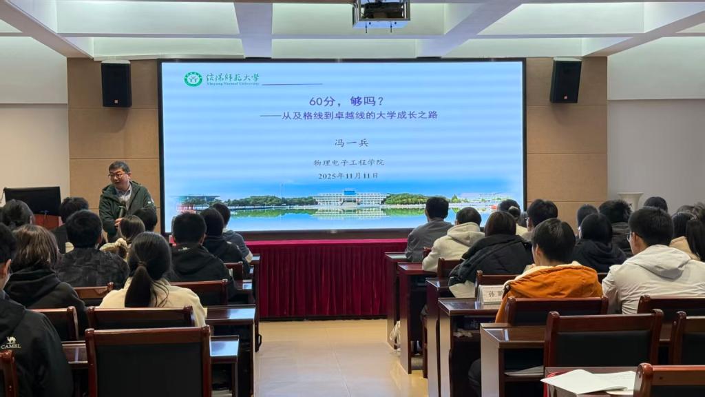 为深化新生专业认知,强化师范生素养培育,11月11日,电影网站 在理科楼402会议室举办新生专业成长教育讲座。本次讲座特邀冯一兵老师主讲,2025级物理学二班全体地方优师计划学生参加。