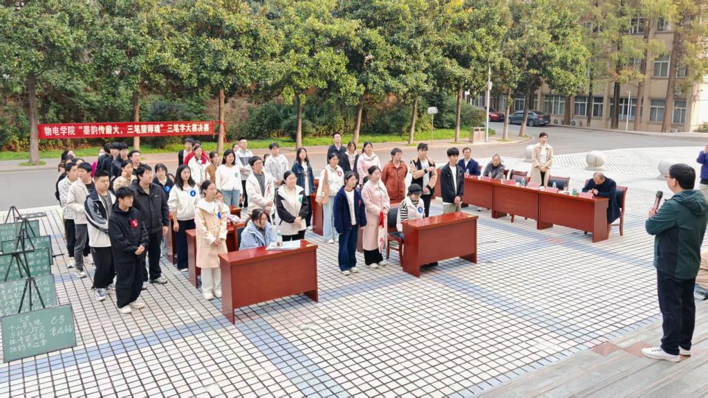11月16日,电影网站 在理科楼前举办“墨韵传薪火,三笔塑师魂”三笔字大赛决赛。学院党委副书记张丽,副院长宋宣玉,冯一兵、陈新武、李炳中、孙金土等领导老师亲临现场并担任评委。