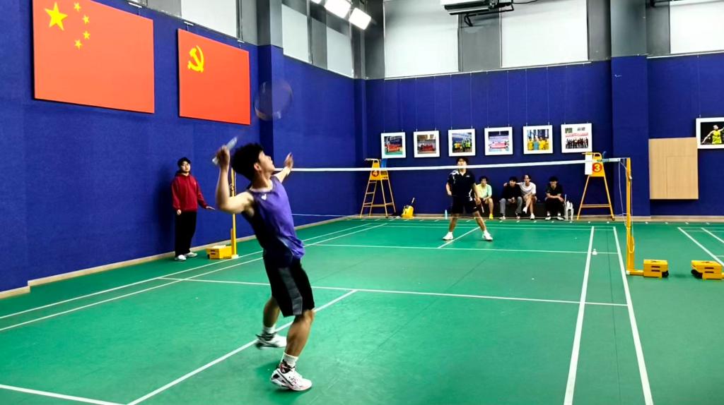 本次比赛设置男子单打、女子单打、男子双打三大竞赛项目,采用分阶段晋级模式。单打比赛决出八强后,通过单循环与淘汰相结合的方式决出名次;双打比赛则采用分组淘汰制。层层递进的赛制既确保了比赛的公平透明,也让每场对决充满悬念。下午四时,体育馆内已人声鼎沸,参赛选手早早到场进行热身练习。比赛现场,选手们各展所长,后场跃起大力扣杀,网前轻巧放网,精湛的球技引得观众连连喝彩。每一次挥拍、每一次救球,都展现出电影网站 学子昂扬向上、奋勇争先的青春风采。