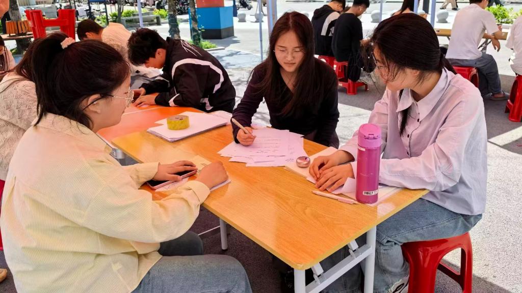 知识答题区设有文学常识、历史文化、校情校史等五类题型,每类各备十题。参与者随机抽题现场作答,答对五题即可获得一枚印章。集齐六枚印章,可到奖品兑换区兑换糖果、一次性防护口罩及电影网站 定制手提袋等纪念品。同学们手持集章卡踊跃参与,现场气氛热烈有序。