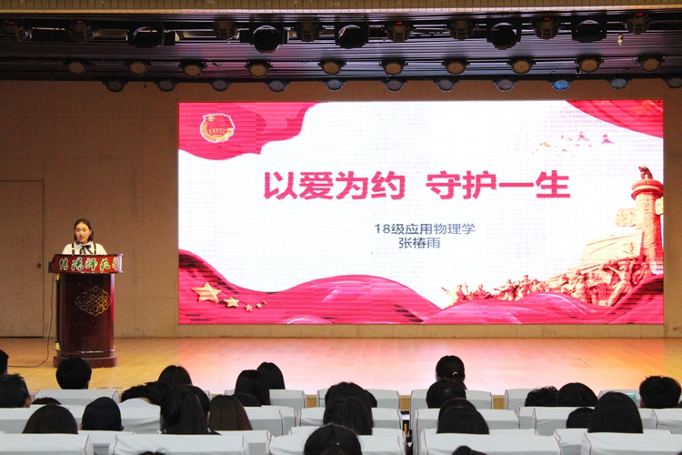 参赛选手结合制作精美的PPT,围绕社会主义核心价值观主题,密切联系实际,热情饱满、慷慨激昂,依次讲述自己准备的社会主义核心价值观故事。2018级物理学班朱昕雨通过讲述守岛英雄王继才夫妇克服种种困难守卫孤岛32年奉献一生的事迹向在场学子展示了社会主义核心价值观之爱国的魅力,鼓励学子们以“时代楷模”为榜样,将爱国之情融入日常生活的小事中。2017级应用物理学班周小雨以“傻大兵”为题,展现了就职十大高危工作之首的消防员们的强烈责任感与使命感,引导学子们服务人民、服务社会,弘扬社会主义职业精神,积极践行社会主义核心价值观。2018级物理学班薄伟以爱国为主题,从“炽热中国心,悠悠爱国情”两个关键,“何为爱国”为切入点,为在场学子分享了两弹一星元勋钱学森的爱国故事,引发在场学子深思。期间,学子们认真聆听、掌声雷动,纷纷表示获益匪浅。经过激烈的角逐,周小雨和杜聪聪获得一等奖,领导老师为获奖选手颁奖并合影留念。
