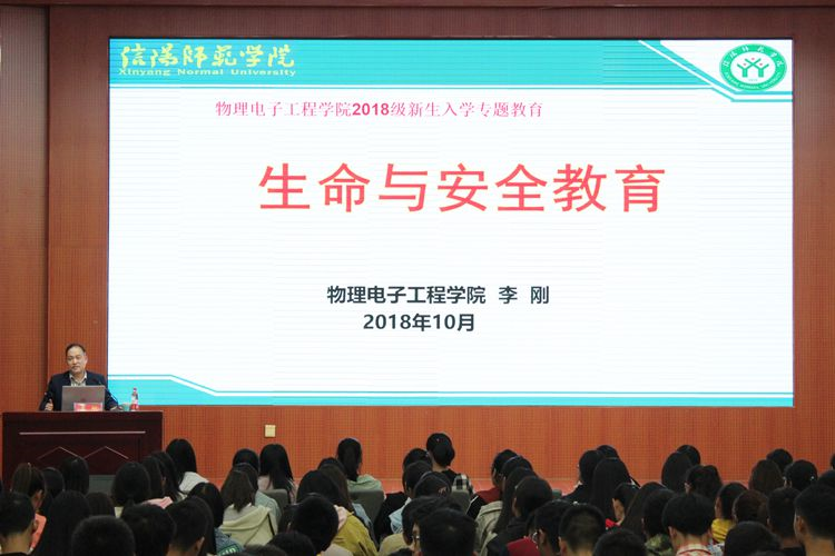 李刚从“交通安全”、“用电防火安全”、“校园安全”、“校外安全”、“饮食卫生安全”、“网络信息安全”六个方面为新生学子作生命与安全教育专题报告。在用电防火安全方面,他以历年来的安全事例为切入点,结合触目惊心的火灾事故图片,提醒在场学子时刻警惕身边安全隐患,规范使用电器,不断提高自身突发事件处理能力,避免此类灾难的发生。李刚结合身边真实事例,详细讲述了防砸死砸伤、防中毒身亡、防网瘾伤害、防溺水伤亡等校园安全隐患16防,要求在场学子学会用安全知识去守护生命,为自身健康成长奠定坚实基础。期间,他宣读了《信阳师范学院关于学生公寓存放和使用安全隐患物品的处分细则(试行)》方案相关内容,指出电影网站