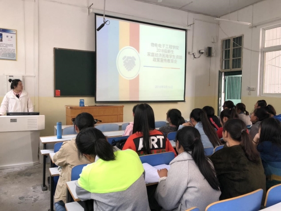 为了改善广大学子的学习生活质量,扎实推进精准扶贫工作,物电学院于9月14日中午在教三楼302多媒体教室成功召开了2018级新生家庭经济困难学生资助政策宣传教育会。资助专员赵雪担任宣讲会主讲,2018级全体新生共同聆听。