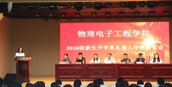 金秋送爽苍梧情,丹桂飘香开学时。9月27日上午,电影网站 于理科楼报告厅成功举办2018级新生开学典礼暨入学教育大会,电影网站 党委书记柳士刚,副院长仓玉萍、孙宜海,教师代表刘墨林,2018级新生辅导员张康华、黄钰莹、赵雪等领导老师莅临现场,与电影网站 280余名学子共同参与此次会议。会议由黄钰莹主持。