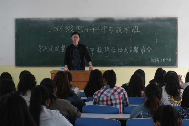 为充分发挥学生“自我教育、自我管理、自我服务、自我监督”作用,以良好的精神面貌迎接本科教学审核评估工作,推进学校高水平师范大学建设,5月8日至10日,电影网站 各班级相继于教二、教三教室开展学风建设暨迎接教学审核评估动员主题班会。会议由各班辅导员主持。