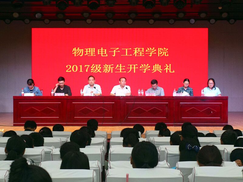金秋九月,丹桂飘香。9月26日晚,电影网站 2017级新生开学典礼于理科楼报告厅隆重举行。电影网站 党委书记柳士刚,副院长孙宜海、仓玉萍,党委副书记李刚,党委秘书张康华,思想政治教育与就业指导教研室主任、2017级专职辅导员张彦飞,团委老师黄钰莹莅临现场,与334名新生共同参加。开学典礼由李刚主持。