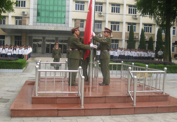 2012级全体学生身穿整洁的校服,排列整齐的队伍在升旗台前等候。6点30分,升旗仪式正式开始,伴着嘹亮的口号,校国旗仪仗队迈着沉稳有力的步伐齐头并进。国歌奏响,五星红旗冉冉升起,全体学生行注目礼,表达了广大师生对祖国的无限热爱与诚挚祝福。