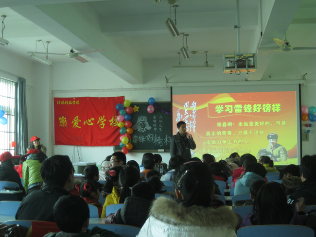 “爱心学校”联合爱心服务社、南风通讯社和社会调查研究协会在理科楼203教室举办主题为“弘扬雷锋精神,关爱你我他”的“留守儿童义务辅导活动”,这项活动将在每周六、周日两天一直延续进行。此项活动是“爱心学校”在“雷锋月”将要逐渐举办的系列活动之一,此次活动受到了信阳电视台的跟踪报道。