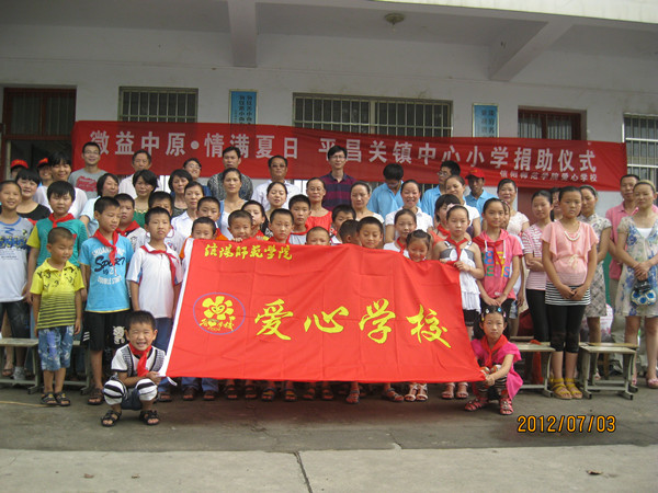暑期“三下乡”社会实践团的到来表示热烈的欢迎。并且他相信,信阳师院为平昌关镇中心小学的孩子们撑起一片更加晴朗的天空,他也相信孩子们一定不忘恩情,珍惜机会,好好学习,以优异的成绩回报祖国和社会。最后,他预祝这次“微益中原,情满夏日”爱心捐助活动圆满成功。接着,捐赠仪式正式开始。志愿者们把将要进行捐赠的东西摆放好,让将要接受捐赠的小朋友们排好了队。志愿者们将募集而来物品进行整理分类后分发给小学生们,分到物品的小朋友们非常开心,他们紧紧抱着这些物品脸上露出天真的笑容。在孩子们的欢声笑语中,这次爱心捐助活动圆满结束。