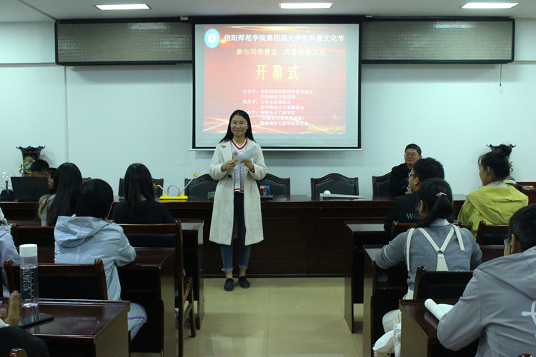 科技创造生活,科普成就未来。11月15日晚,由我校团委、科学技术协会主办,电影网站 大学生科普协会、星空物语天文观测协会联合承办的信阳师范学院第四届大学生科普文化节于理科楼511会议室顺利举办开幕式。电影网站 指导老师冯一兵莅临现场并给予相关建议与指导。