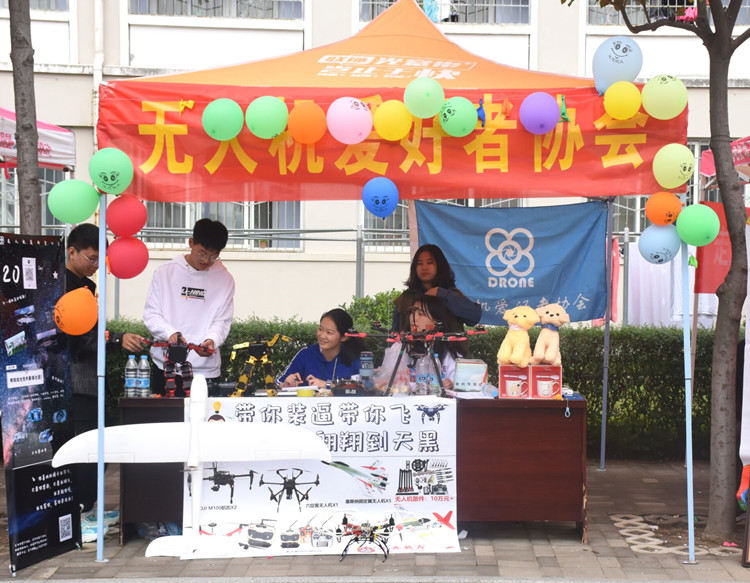 爱心学校、雅轩棋社、电子信息技术协会、大学生创客联盟、羽毛球协会、星空物语天文观测协会、大学生科普协会、无人机爱好者协会八个社团积极参与其中。