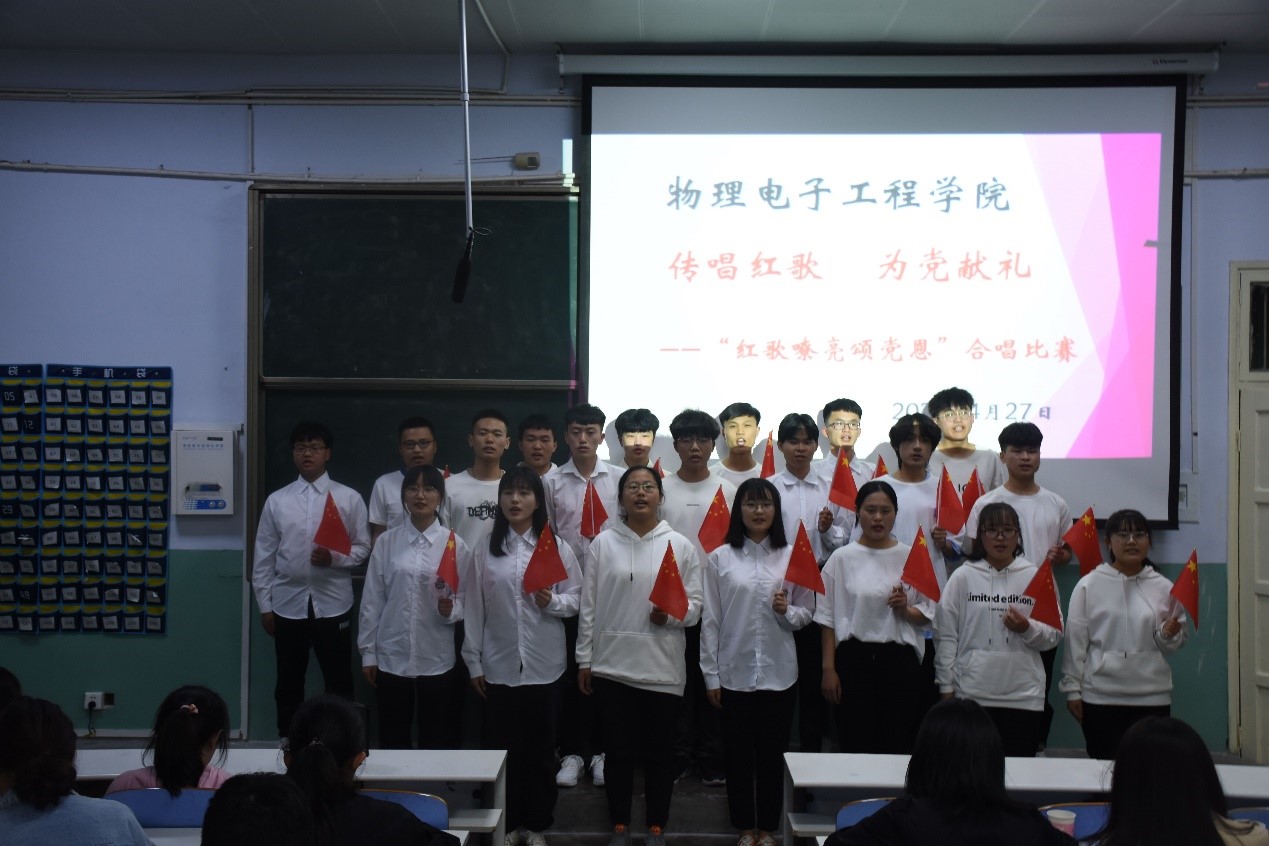 弘扬民族文化,传唱红色金曲,激发爱国热情,展现物电风采。为庆祝建党100周年,电影网站 于2021年4月27日晚6:30在教二T1举行“传唱红歌 为党献礼”——红歌嘹亮颂党恩合唱比赛。文学院团委老师柳家琪,专职辅导员陈辉,旅游学院团委老师赵子鉴,数学与统计学院专职辅导员杨帆,化学化工学院专职辅导员严赫,物电学院团委老师牛文娟参加此次活动,并担任此次比赛评委。此次合唱比赛充分展示了电影网站 学生对党、对祖国最真挚的爱,也展现电影网站 学子饱满的精神面貌。