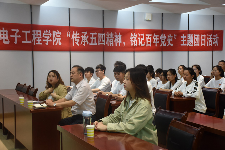 电影网站 党委副书记李刚指出,在建党100周年的重要时刻,在“五四”运动102周年的关键点,在全团开展“学党史、强信念、跟党走”学习教育活动中,开展“传承五四精神,铭记百年党史”主题团日活动,对继续发扬五四精神,教育引导物电学生们要从党史学习中激发信仰、获得启发、汲取力量,不断坚定‘四个自信’,不断增强做中国人的志气、骨气、底气,树立为祖国为人民永久奋斗、赤诚奉献的坚定理想。要锤炼品德,自觉树立和践行社会主义核心价值观,自觉用中华优秀传统文化、红色文化、社会主义先进文化培根铸魂。要勇于创新,深刻理解把握时代潮流和国家需要,敢为人先、敢于突破,以聪明才智贡献国家,要实学实干,脚踏实地、埋头苦干,孜孜不倦,在攀登知识高峰中追求卓越,在肩负时代重任时行胜于言,以切实行动和优异成绩迎接建党100周年。