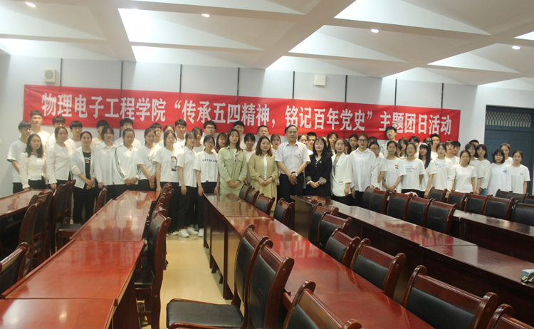 为加强爱国主义教育,弘扬民族精神,5月12日下午电影网站 于理科楼四楼会议室举办“传承五四精神,铭记百年党史”主题团日活动。校团委宣传部部长雷玲应邀出席活动。物电学院党委副书记李刚、团委老师牛文娟、化工化学学院团委副书记邓雪婉以及20级物理学一班全体同学共同参加了活动。此次活动由物电学院团委副书记李诗吟主持,班级团支部书记韩文琪主讲。