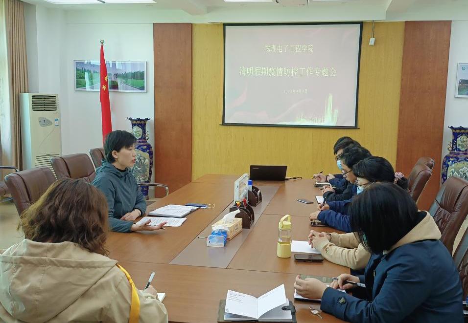 强化正面宣导,落实“六会一走访”。4月3日,电影网站 在理科楼911会议室召开清明节假期疫情防控工作专题会。会上,党委副书记张丽对各位班主任在近期疫情防控工作中的辛勤付出给予充分肯定,同时强调清明假期要持续做好疫情防控工作,通过“六会一走访”实现横向到边、纵向到底、上下联动、内外衔接,让思想教育、疫情防控政策传达不留死角,全面筑牢校园疫情防控坚固防线。