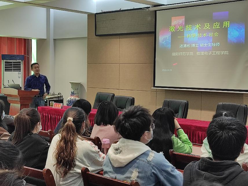 4月19日下午,电影网站 格致讲坛系列讲座之“激光技术及应用”在理科楼四楼连廊会议室开讲,学院诚邀汤清彬副院长为主讲嘉宾。本次讲座由团委老师牛文娟主持,2020级、2021级材料物理专业和其他专业的部分学生共同聆听此次讲座。
