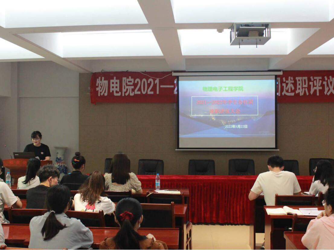 此次述职评议大会的开展,全面回顾了2021—2022学年物电学院学生会社团各部门工作的开展情况和取得成效,促进各部门之间的交流,准确把握自身定位,不断强化服务意识,为学院团学工作建设贡献青春力量,为学院团学发展添砖加瓦。
