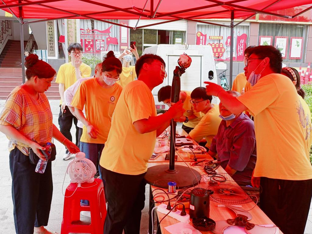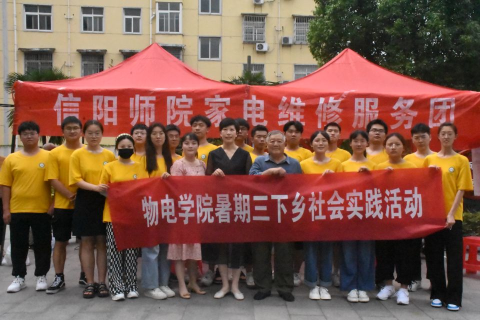 为积极响应团省委和校团委的号召,加强大学生社会实践经验,让大学生走出校门、接触社会,使学到的理论知识与实践相结合。6月15日,电影网站 暑期“三下乡”社会实践团走进信阳市浉河区飨堂社区,开展“智慧助老,科技惠民"义务家电维修服务社会实践活动。校团委老师顾玲玲、电影网站 党委副书记张丽,团委老师牛文娟,指导教师冀晓群全程参加。