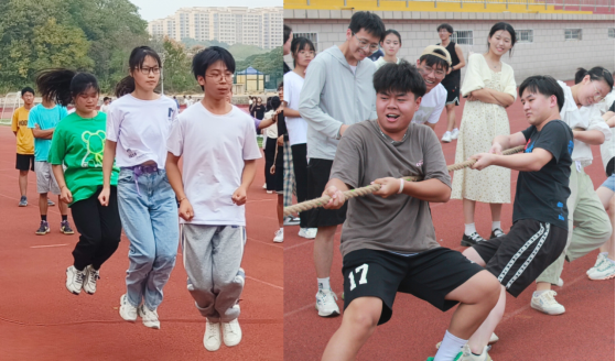 此次趣味运动设有拔河和团体跳绳两个项目,以班级为单位参赛。参赛队员们秉持着“友谊第一,比赛第二”的原则,在赛场上,发扬着合作和拼搏精神,充分展现了电影网站 学子的青春风采。啦啦队们为参赛队员们呐喊助威,加油声、呐喊声,震耳欲聋,给运动员们带来无穷的力量。