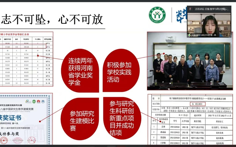 活动伊始,主持人简要介绍了宣讲团成员的信息,他们是全面发展的专业标兵、知行合一的实践能人、服务奉献的学生骨干,在各方面都起到积极的带头示范作用。随后在同学们的热情回应中宣讲正式开始,首先2020级传媒学院的杨乔丹,她以“生如逆旅,一苇以航”为主题向大家展示了她自己在学习方面的成绩和心得,并且从自身经历出发与同学们分享了自己参加实习工作和志愿活动的收获。希望同学们能够以谦卑的态度,努力提高自身修养,在人生逐梦的道路上坚定不移的走下去。然后2021级数学与统计学院曾一凤,她就自身经历鼓励同学们要全面发展,培养广泛的兴趣爱好,以积极向上的态度面对生活。最后2019级外国语学院田润丰,他结合自己的专业特点,就英语学习方面向同学们提出一些建议并向同学们推荐了一些公众号和真题。活动最后同学们积极踊跃向优秀学生代表们提出自己在现阶段遇到的一些问题和困扰,优秀学生代表们也倾囊相助,本次宣讲活动在温馨和谐的氛围中落下帷幕。
