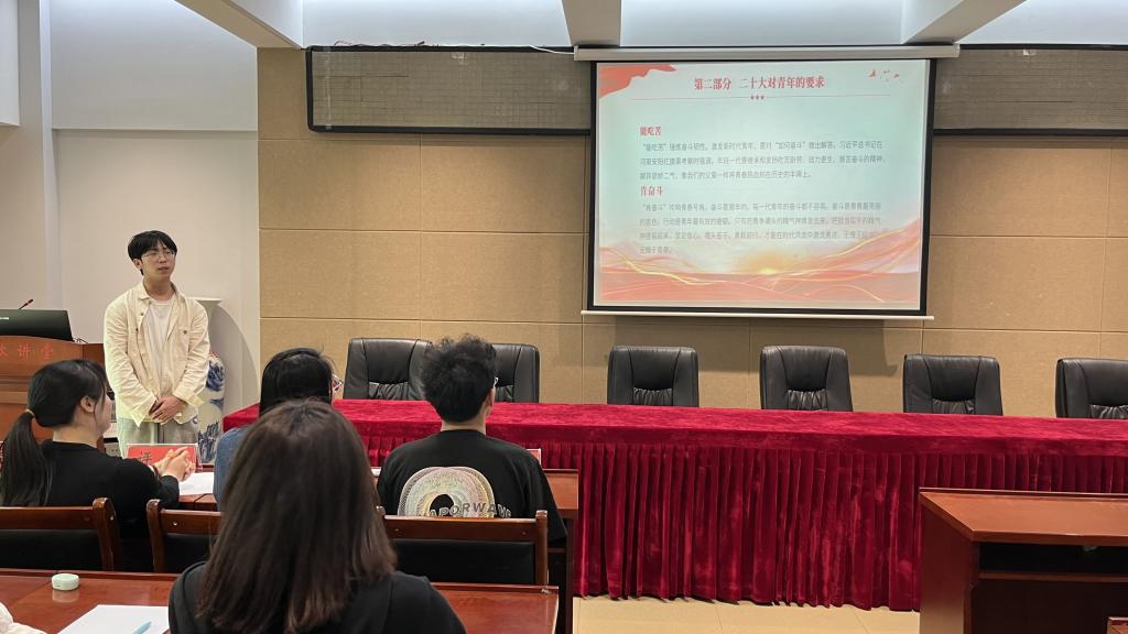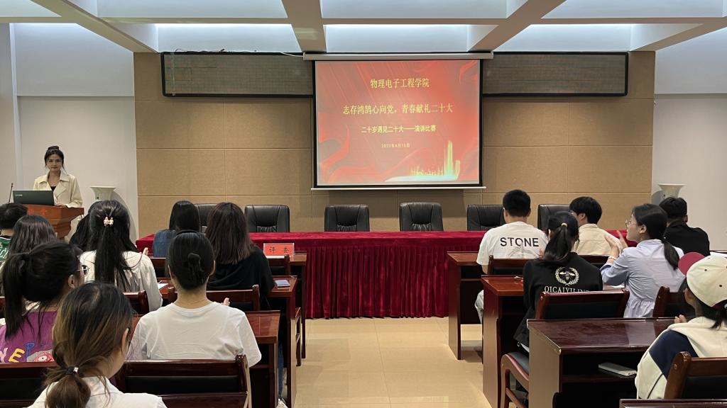为深入学习贯彻党的二十大精神,引导同学们自觉践行社会主义核心价值观。4月15日,电影网站 于理科楼402会议室举行以“志存鸿鹄心向党,青春献礼二十大”为主题的二十岁遇见二十大演讲比赛。此次比赛由团委老师牛文娟,学生会主席团成员担任评委,张佳琪主持。