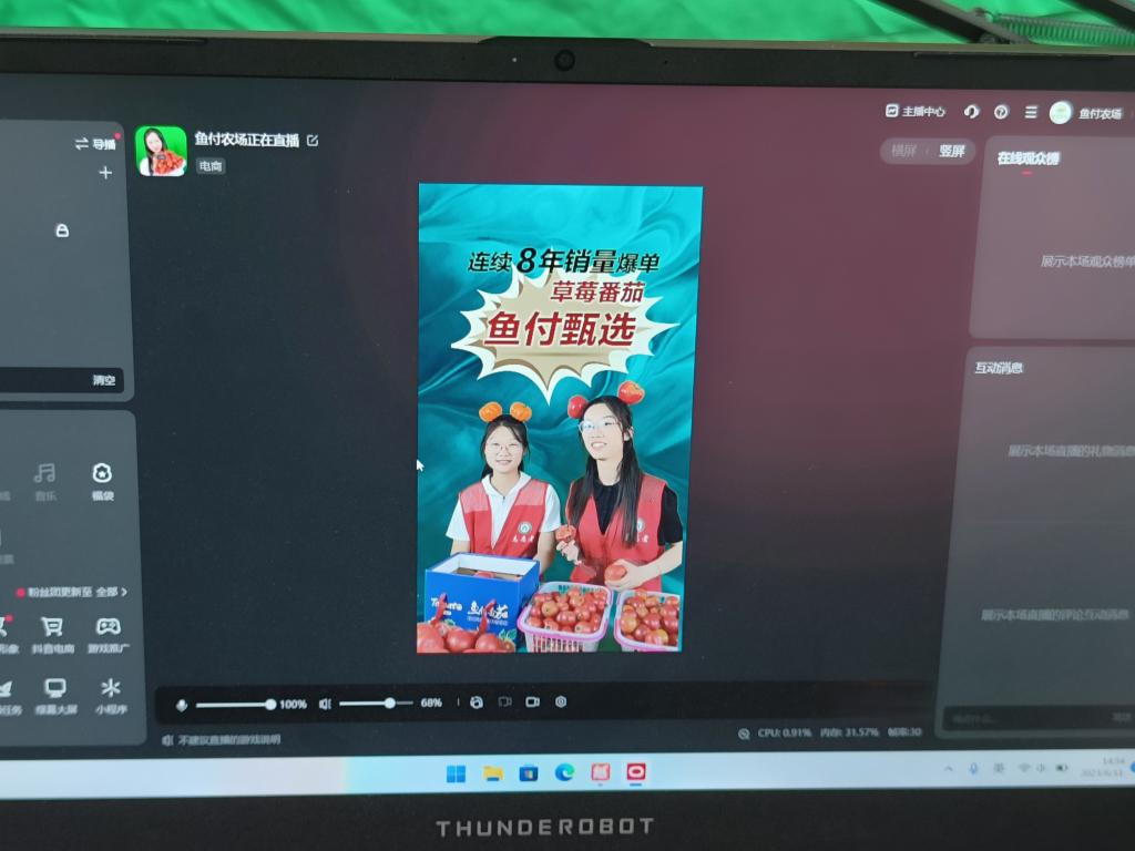 志愿者们将西红柿大棚升级成“直播间”,带领消费者们了解西红柿的生长过程,在现场展示和销售西红柿,获得了极大反响。其中,4名志愿者们直播两个小时后,西红柿销量达到320斤左右,总计金额3840元,全面提升了农产品供销对接效率。