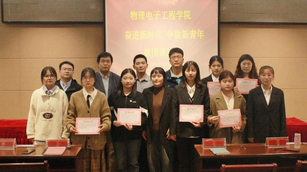 经过评委组认真评选,2022级电子信息工程班刘喆荣获“一等奖”;2022级物理学一班张子韵、2023级物理学二班李好荣获“二等奖”;2023级材料物理班尹玉洁、2022级电子科学与技术班程赞璞、2022级新能源科学与工程班燕佳怡荣获“三等奖”。