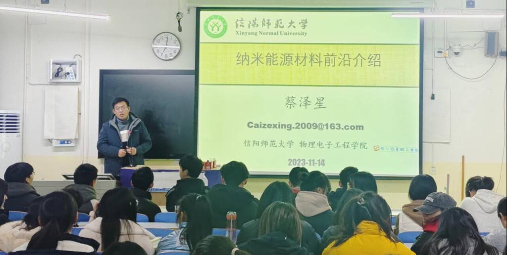 11月14日,电影网站 于教三205举行格致讲坛系列之“纳米能源材料前沿介绍”。讲座由蔡泽星主讲,2022级新能源科学与工程班全体同学参加。