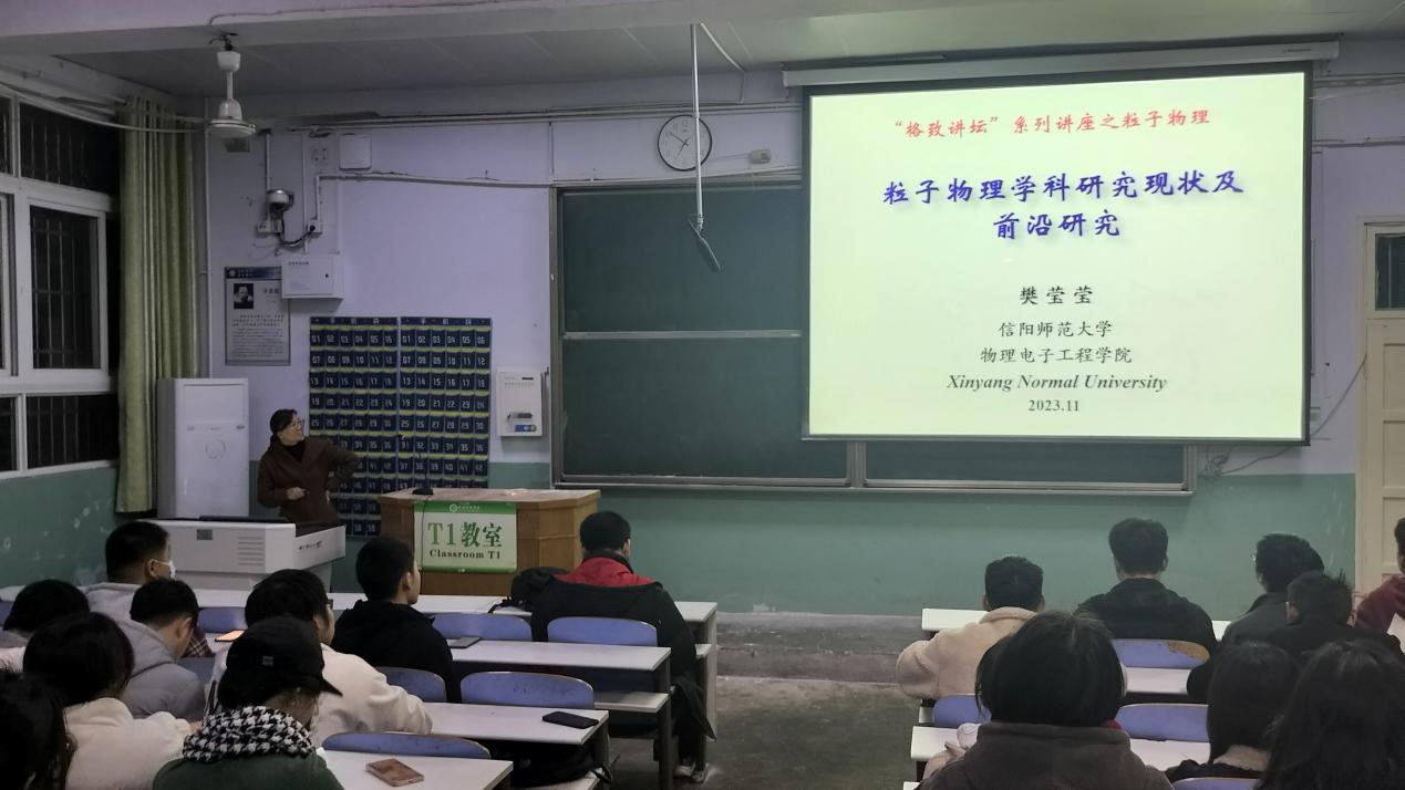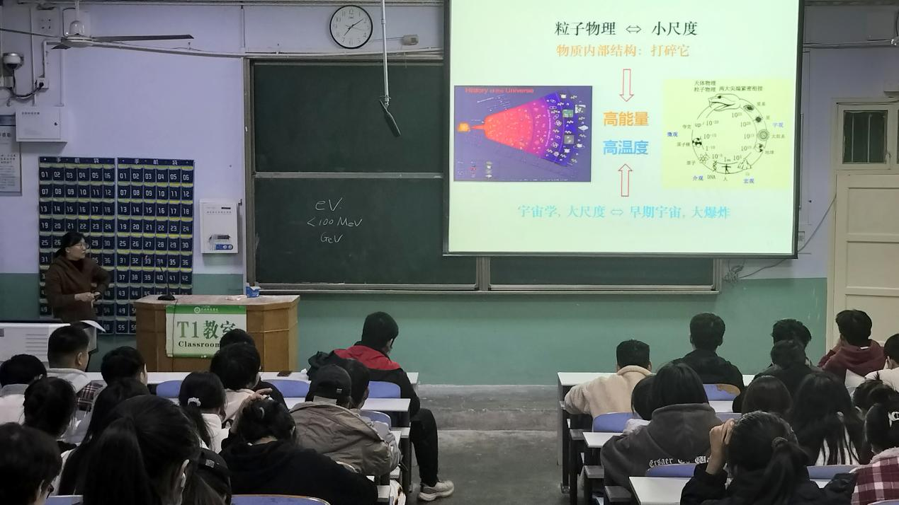 11月18日,电影网站 于教二T1举行格致讲坛系列之“粒子物理学科研究现状及前沿研究”。讲座由樊莹莹主讲,2022级物理学1、2班全体学生参加。