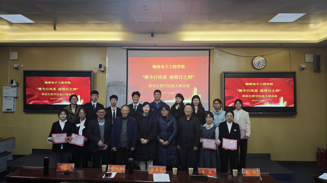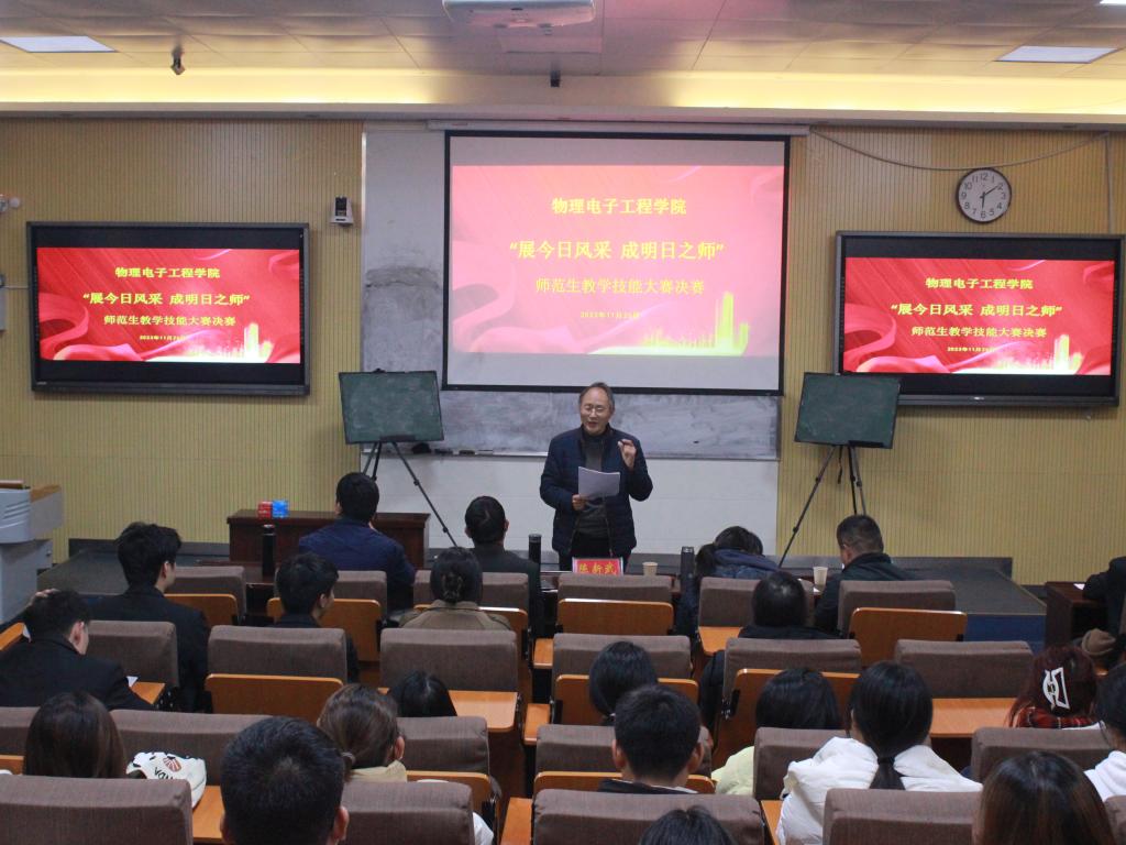 教师是立教之本、兴教之源,是教育发展的第一资源,为提升电影网站 师范生从教核心竞争力,擦亮“师范”品牌。11月25日,电影网站 于教四207举办“展今日风采,成明日之师”师范生技能比赛决赛,学院党委副书记张丽受邀出席,陈新武、冯一兵、李存、畅宁波、赵华担任评委,2022级物理学1、2、3班部分学生共同参加。