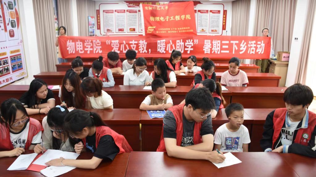 为鼓励青年大学生积极参与乡村建设号召中,为乡村基础教育贡献青春力量。7月8日起,电影网站 “大手拉小手”爱心支教团开展“青春筑梦,爱心支教”社会实践活动。此次活动分别在信阳、南阳、郑州、许昌、驻马店等多个城市开展,各个支教小队分别选取学校、社区、居家等场所进行辅导。