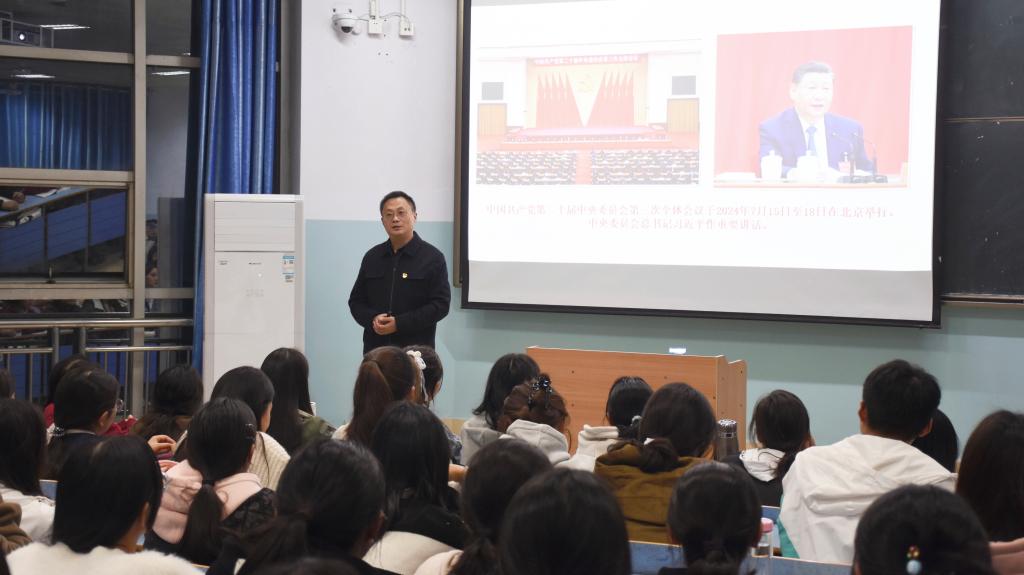 报告中,方明科首先带领新生一起学习了党的二十届三中全会精神和全国教育大会精神,结合实际情况重点宣讲了深化教育综合改革、建设教育强国的重要意义和重大举措,用习近平总书记对青年大学生的寄语激励新生们增强使命、坚定信念、树立目标、挺膺担当。在“了解大学 认识自我”部分,以“为什么上大学?”“如何度过大学生活”为切入点,帮助新生梳理进入大学后在学习、生活、思想等方面可能存在困惑和问题,给出解决建议;介绍了学校、学院历史沿革、发展现状、学科专业和人才培养等方面的基本情况,帮助新生们对学院的整体情况有了更加深入的了解;在“学习榜样 砥砺奋进”部分,分享了优秀校友先进事迹,阐释了树立理想、知行合一的重要性,鼓励新生们抓住大学的黄金时期,树立正确的人生观、价值观,明确目标、努力学习、掌握本领、锤炼品行、提升能力,立志做有理想、敢担当、能吃苦、肯奋斗的新时代好青年,让青春在强国建设、民族复兴新征程上绽放光彩。