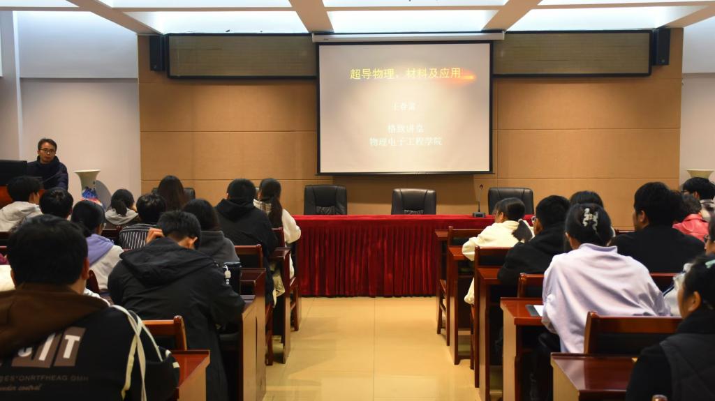 11月14日,电影网站 于理科楼402会议室举办格致论坛第1期—超导物理研究现状及应用。本次讲座由王春雷主讲,2023级与2024级学生积极参加。
