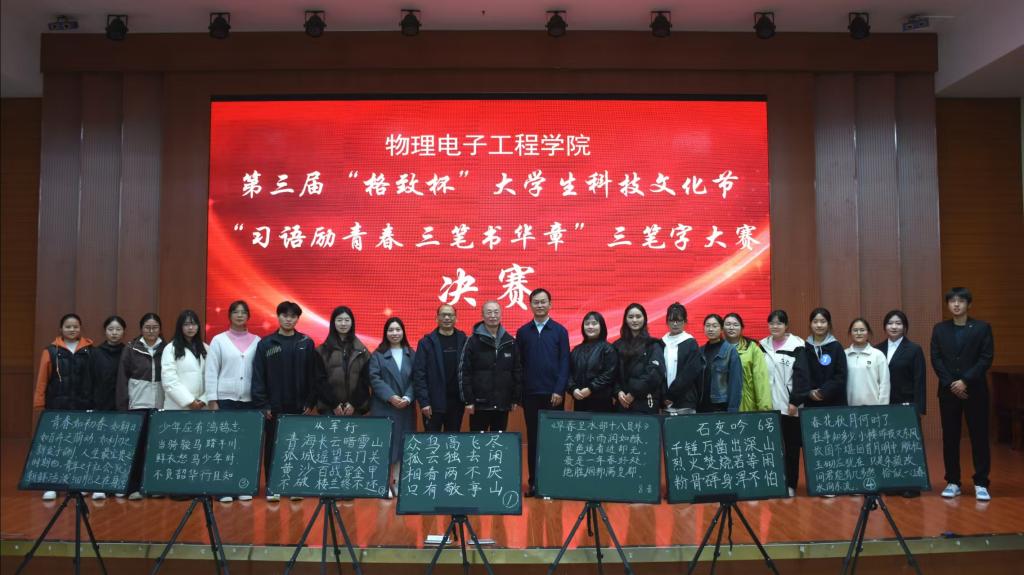 为了进一步提高师范生的书写能力,电影网站 于11月23日在逸夫楼报告厅举办“习语励青春,三笔书华章”三笔字大赛决赛。本次大赛邀请到郭建涛、李炳中、孙金土、唐桂林和牛文娟五位老师担任评委,符家浩和王子笑担任主持人,2023级与2024级学生积极参与。
