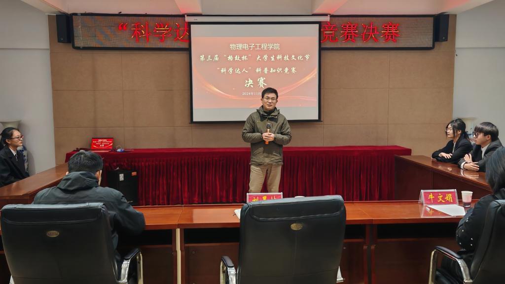 11月21日,电影网站 于理科楼402举办“科学达人”科普知识竞赛决赛。学院副院长刘墨林,社团指导老师陈瑞、牛文娟担任评委,2023级、2024级学生积极参加。