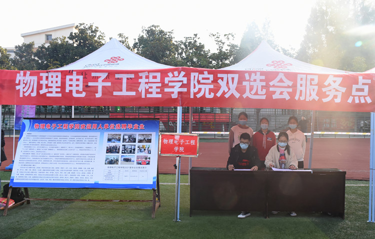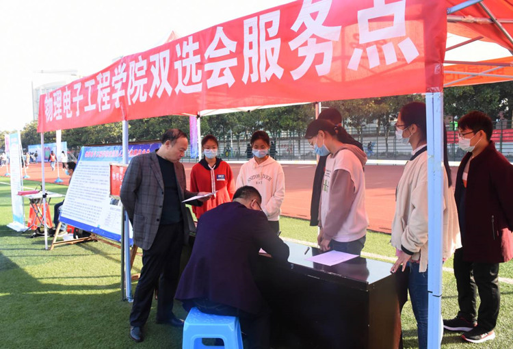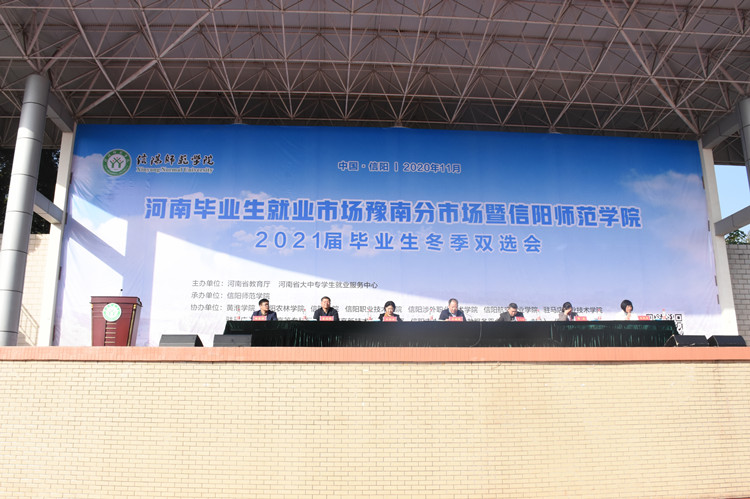 为缓解就业压力,提高毕业生就业水平,11月7日,由河南省教育厅、河南省大中专就业服务中心主办,信阳师范学院承办,信阳农林学院、信阳学院、信阳职业技术学院等联合协办的河南毕业生就业市场豫南分市场暨信阳师范学院2021届毕业生就业冬季双选会于我校西操场顺利开展。电影网站 党委书记柳士刚,思想政治与就业指导教研室主任张彦飞,团委老师杨勇亲临双选会现场对毕业生就业工作进行指导。