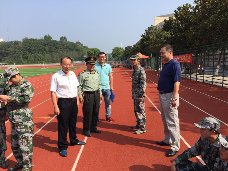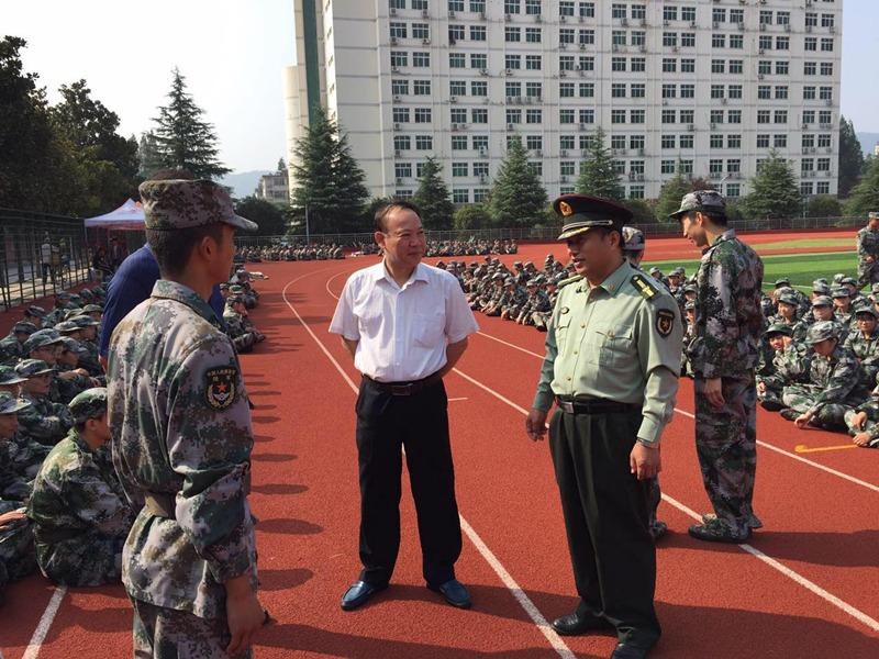 军训情况,与教官进行了亲切交谈,对教官和2017级新生表示亲切慰问,希望同学们严格要求自己,磨练坚强意志,为今后的学习和生活打下坚实的基础。