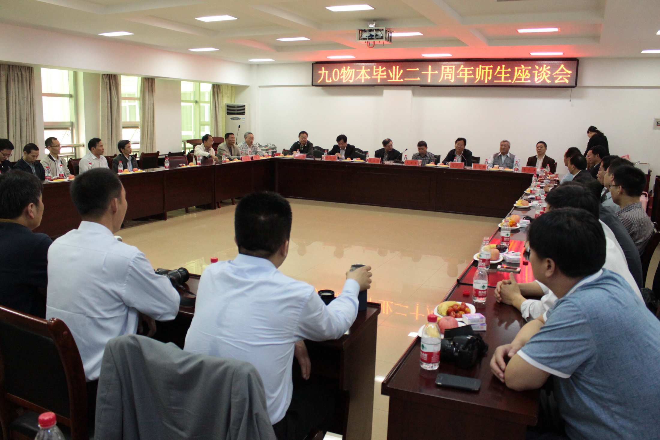 在座谈会上,90级物理本科班学生代表致感谢辞,感谢母校培养,感谢恩师的教育,感谢同学们的珍惜。物电学院院长罗永松代表学院致欢迎词,并介绍了物电学院的发展情况。招生就业处处长刘守义致辞欢迎校友回家,希望校友们常来常往,关注、支持母校的发展。信阳师院副院长王文臣教授代表学校致辞,热情欢迎校友返校,并向校友们介绍了学校的发展变化以及学校在专业建设、教学改革、科研发展、人才培养等方面取得的优异成绩,指出学校的发展变化离不开师生们的努力,更离不开校友们的支持和贡献,希望校友们一如既往地关心和支持学校的发展建设。同时,向在各行各业为母校赢得荣誉的90级物理本科班的校友们致以诚挚问候和美好祝愿。王院长还用泰戈尔的诗句寄语校友:“无论你走到哪里,你的心总和我在一起;无论黄昏时的树影有多长,它总和树根连在一起。”任课教师代表、原物理系主任戴启润老师代表老师们对校友提出了新的期望和祝福。