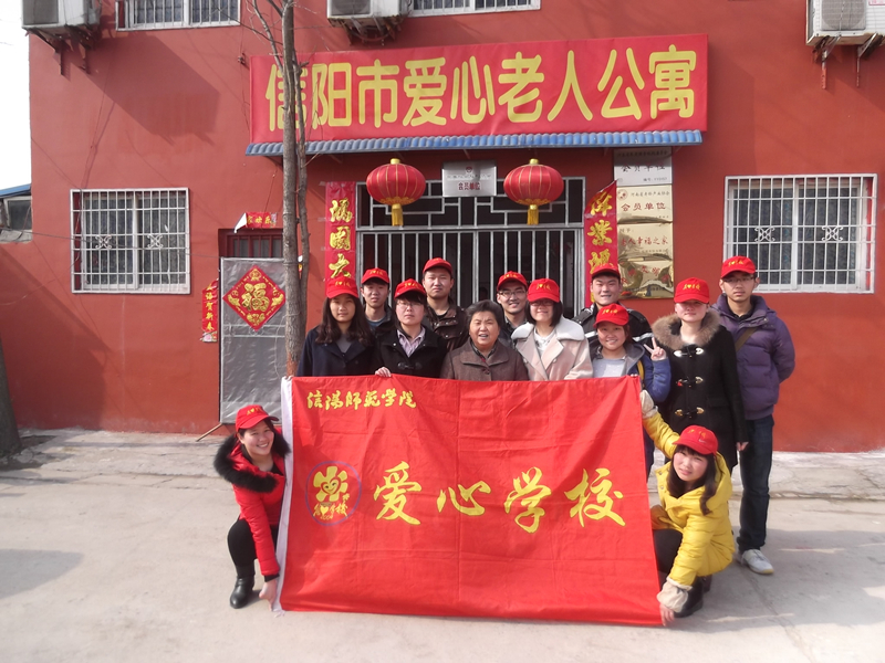 以师生党员为主导,联合爱心学校社团组成“党的群众路线教育实践志愿服务队”前往信阳市爱心老人公寓,开展“尊老、敬老、献爱心”志愿服务活动,为那里的老人送去了浓浓的暖意。