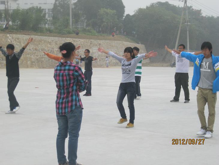 大一新生集中在东操场内学习和训练第二套广播体操。负责训练大一新生的成员,都是由该院领导精心挑选出来的,这些训练员在去年比赛中都拿到了非常好的成绩。在这次备战训练中她们更是认真负责,她们将连贯动作分解,并耐心地讲解每一个动作,然后一遍一遍地给电影网站