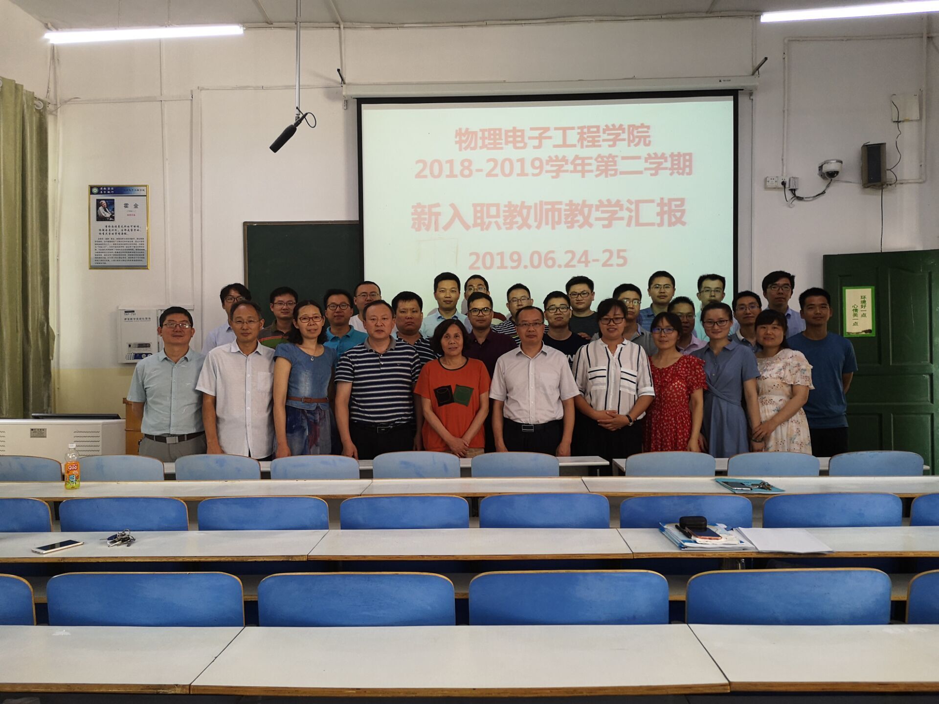 于2018-2019学年第二学期开展了新入职青年教师教学能力提升研修系列活动,以加强对新入职青年教师的培训和指导。参加本次研修活动的是近三年新入职的青年教师,共21人,本次活动指定了详细的工作方案,活动分三个阶段进行。第一、二两个阶段安排在本学期的3月份和5月份,在学院教学督导组的组织下,采取“传、帮、带”的方式,在备课、讲课、课件制作等环节开展了两期轮训,要求人人参与,人人过关。第三个阶段是2019年6月24日至25日,在第三教学楼02教室分三组开展了新入职青年教师教学汇报课活动。汇报课上,每位青年教师进行了15分钟的汇报讲课,展示其培训的效果。学院邀请了秦萍、王栋臣、陈新武、冯一兵、李存等老师作为本次汇报讲课的评委,院长涂友超、副院长仓玉萍、物电院部分教师也参加了汇报课活动。
