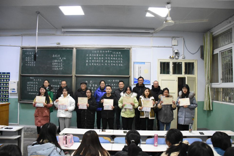 随后,电影网站 于教二梯一教室进行了获奖选手粉笔字展示和颁奖。在粉笔字展示环节中,一、二等奖获得者顺序上台在黑板上书写随机抽取的诗歌内容,学子们全神贯注、精心排版、行云流水、一气呵成,凭借端庄娟秀、整齐大方的字体向在场观众展现了中华汉字的独特魅力,赢得评委和观众的一致好评。最后,大赛评委老师为获奖人员颁发证书、奖品并合影留念。