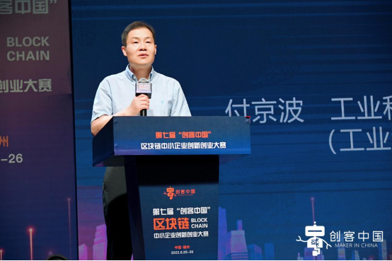 工业和信息化部网络安全产业发展中心(工业和信息化部信息中心)主任付京波为此次大赛致辞,他表示区块链专题赛在福建举办,突显了福建省和福州市推动区块链技术应用和产业发展的决心。下一步,工业和信息化部网络安全产业发展中心将与各级政府一道,推动设立培优区块链特色产业园区,联合专业化服务机构和创新服务载体,为参赛企业和创客团队提供全链条基础服务和区块链技术创新公共服务,通过技术合作,供需对接,产融协同等方式,努力促进赛事成果转化,项目落地孵化,共同培育集聚一批区块链专精特新企业,打造区块链发展的先导区,中小企业区块链特色产业集群。