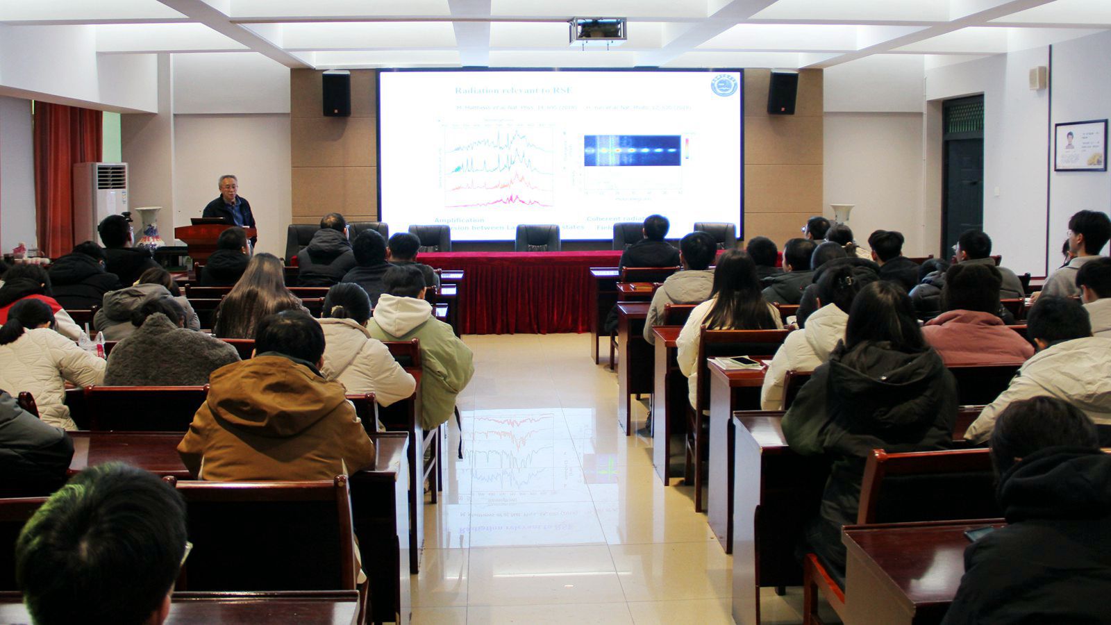 应学院邀请,中国科学技术大学陈京教授于12月28日做了题为《强激光场下里德堡态激发的量子模型》的学术报告。报告会由副院长刘墨林主持,部分教师、研究生及本科生聆听了报告。